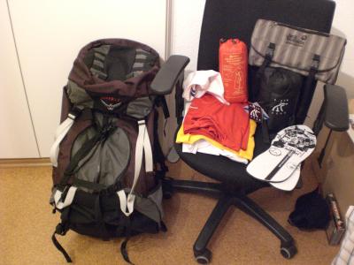 Nun habe ich die meisten Sachen, die ich für meinen Trip brauche. Auf dem Foto könnt ihr einen Teil der Ausrüstung sehen. Ein anderer Teil ist in der Wäsche.
