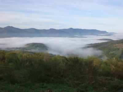 Blick nach Galicien...wir sind auf 1300 Metern und sehen aus der Sonne in die Suppe...wunderschoen